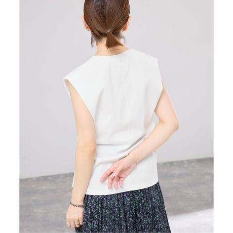 ほどよく開いたVネックと背中の繊細なステッチが、さりげないデザインポイントに。