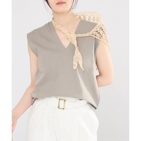 ほどよく開いたVネックと背中の繊細なステッチが、さりげないデザインポイントに。
