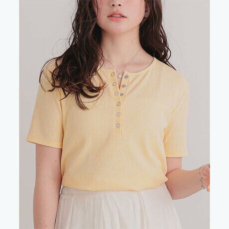 ・華奢なリングドット釦がポイントのヘンリーネックで、甘さとこなれ感を両立