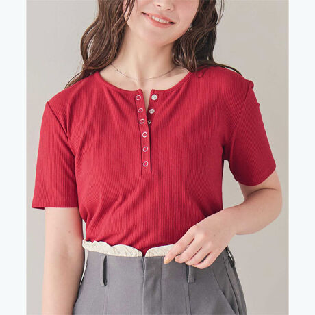 ・華奢なリングドット釦がポイントのヘンリーネックで、甘さとこなれ感を両立