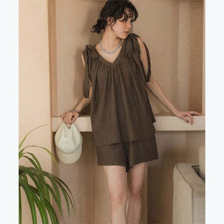 ショートパンツ付リボントップス/ラッシュガード