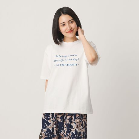 柔らかな雰囲気の文字やカラーで、日常のコーデに馴染みやすい一着です。