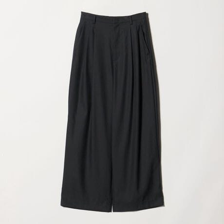 バックに大胆な分量感で施したラップディテールが特徴のワイドパンツ。