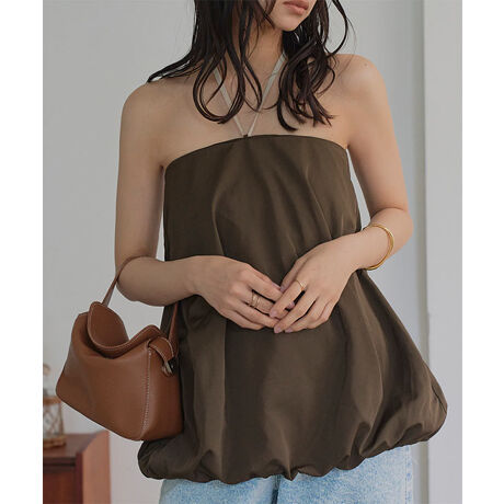 ふんわりと丸みのあるバルーンシルエットが可愛く着映え、夏は一枚でベアトップとして、インナーを重ねてビスチェ風にレイヤードスタイルにもロングシーズン着回していただけます。