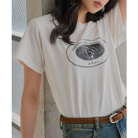 フロントのロゴプリントがアクセントになった、1枚でこなれ感のあるTシャツ。