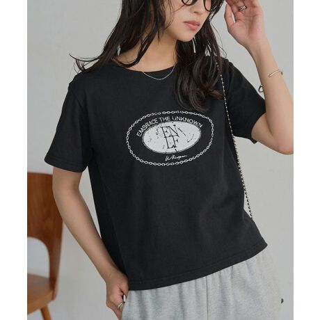 フロントのロゴプリントがアクセントになった、1枚でこなれ感のあるTシャツ。
