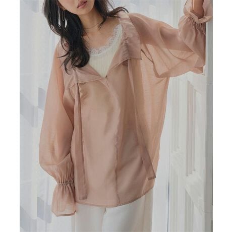 アクセいらずでお顔周りを華やかに、シンプルなボトムを合わせるだけでニュアンス感ある表情に仕上げてくれるシアーブラウスです。