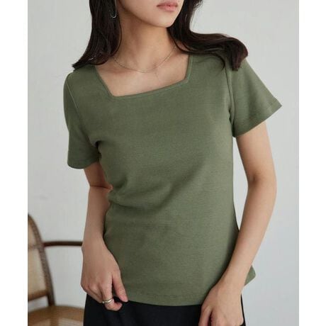 深めに開いたスクエアネック&Uネックで女性らしさ添える半袖シャツ。