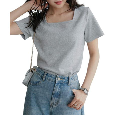 深めに開いたスクエアネック&Uネックで女性らしさ添える半袖シャツ。