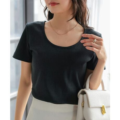 深めに開いたスクエアネック&Uネックで女性らしさ添える半袖シャツ。