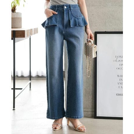 ウエストまわりにあしらった立体的なフリルデザインがコーデの主役になるデニムパンツ。