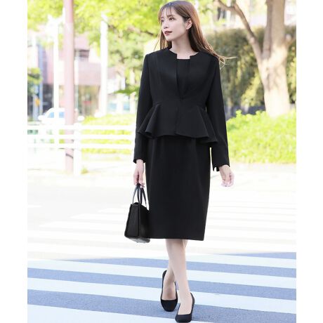 ノーカラーペプラムジャケット コクーンワンピース セットアップ スーツ フォーマル セレモニー