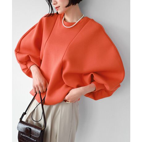 ダンボールニット生地のもちっとした素材感が、サイドから見ても袖のフォルムがふんわりと出るように仕上げています。