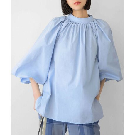 ボリューム袖スタンドカラーコットンブラウス