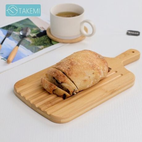 竹美TAKEMIの天然竹製コンパクトまな板。片面に溝加工があり、用途に応じて両面使えます。