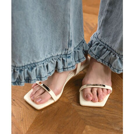 つま先はスクエアトゥで太めのヒールなので履き心地もよく、今っぽさのある抜け感とヌーディーさに仕上がる1足です。