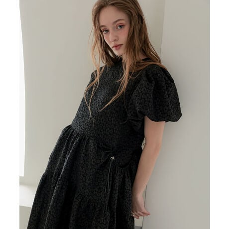 ふんわりとしたパフスリーブと、分量感のあるティアードシルエットが、甘さを感じさせながらも落ち着いた印象に仕上げてくれる1着です。
