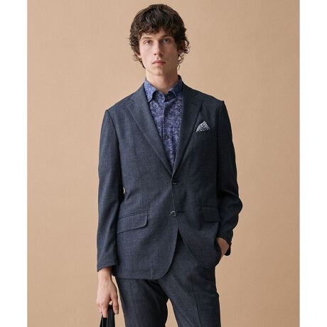 ベーシックな2つボタンのテーラードジャケットです。背中の裏地と、胸ポケットの裏地を引き出してチーフとして使える「ギミックチーフ」に、清涼感のあるオリジナルプリント生地を使用しています。