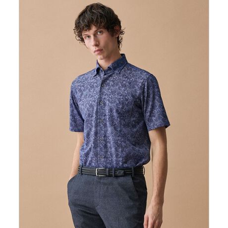 ナチュラルなかすれ感を表現したペーズリー柄が特徴の半袖シャツです。襟先を裏側で固定する隠しボタンダウン仕様で、カジュアルながらもきちんとした印象を与えます。