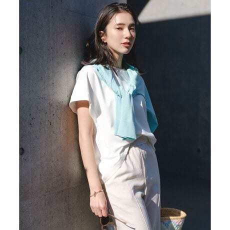 ■デザイン身体が泳ぐようなたっぷりとしたシルエットのドルマンTシャツ。大胆にあいた袖ぐりと後ろタックによるコクーンシルエットにより、抜け感を演出します。後ろにはテープ付きのファスナーが付いているので着脱もスムーズ。デニムを合わせた爽やかな着こなしから、スラックスやIラインスカートを組み合わせたきれい目コーデまで、幅広く活躍するアイテムです。