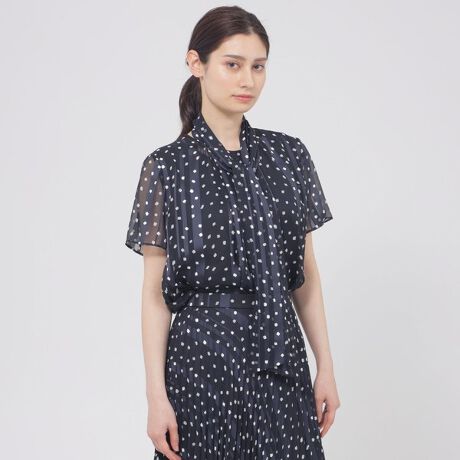 <上品なシアー感とスクエアドットが魅力のエレガントブラウス>