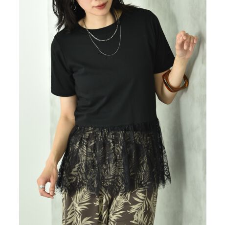 [型番:23134010]ゆるっと着たい大人のレースカットソー裾に贅沢なレースをあしらった、1枚でサマになるレイヤード風デザインのカットソーです。『カットソー1枚だとシンプル過ぎる。。。』という日も、これなら大丈夫!気になる腰回りもさりげなくカバーしてくれるのも嬉しいポイントです。■取り扱いご自宅でイージーケア(手洗い)ができます。