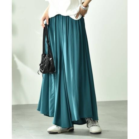 綺麗に落ちるレーヨン混素材を使用したフレアーパンツ。肌さわりが良く上品なナチュラル感で大人の女性が着まわせるお勧めな1枚です。スカートにも見えるフレアー分量感でフェミニンさもキープされているのも嬉しいポイント。リラックス感もあるのでこれからのシーズン大活躍間違いなしです!