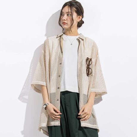 シンプルになりがちな夏コーデでも重ね着を楽しみやすい軽くて涼しいメッシュ生地。