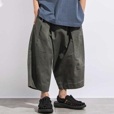 ウエスト部分にタイパンツのような深めのタックを入れることで立体感のあるシルエットになっています。