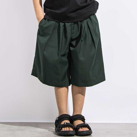 ウエストにタックを入れて裾に向けて広がるワイドシルエットに仕上げています。
