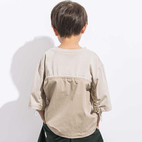同色で揃えたカットソーと布帛のコンビネーションがおしゃれなTシャツ。
