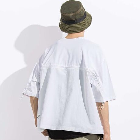 さらりとした天竺のカットソーに背中の下側をリップストップの生地に切り替え。