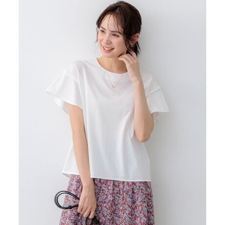 涼やかに華やぐフリル袖が印象的なTシャツ