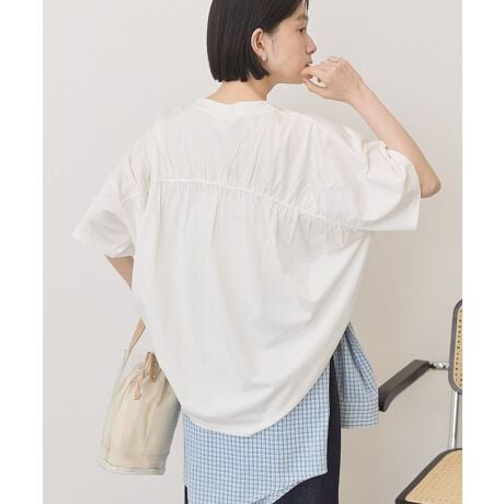 やわらかな雰囲気を演出するバックギャザーデザインが魅力のカットプルオーバーです。後ろにたっぷりと入ったギャザーが自然な立体感を生み出し、シンプルながらもさりげないデザイン性をプラスしています。丸みのあるコクーンシルエットが身体のラインをやさしく包み込み、ゆったりとした着心地でリラックス感のあるスタイルを楽しめます。程よい丈感でパンツにもスカートにも合わせやすく、幅広いコーディネートに活躍します。サイドスリットがさりげない抜け感を与え、動きやすさと軽やかな印象をプラスしてくれるのもポイントです。シンプルなデザインなのでデイリー使いしやすく、カジュアルながらも大人らしい落ち着いた雰囲気を演出します。毎日のコーディネートに取り入れやすく、季節を問わず長く活躍する便利な一着です。