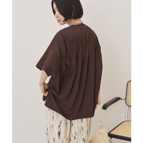 やわらかな雰囲気を演出するバックギャザーデザインが魅力のカットプルオーバーです。後ろにたっぷりと入ったギャザーが自然な立体感を生み出し、シンプルながらもさりげないデザイン性をプラスしています。丸みのあるコクーンシルエットが身体のラインをやさしく包み込み、ゆったりとした着心地でリラックス感のあるスタイルを楽しめます。程よい丈感でパンツにもスカートにも合わせやすく、幅広いコーディネートに活躍します。サイドスリットがさりげない抜け感を与え、動きやすさと軽やかな印象をプラスしてくれるのもポイントです。シンプルなデザインなのでデイリー使いしやすく、カジュアルながらも大人らしい落ち着いた雰囲気を演出します。毎日のコーディネートに取り入れやすく、季節を問わず長く活躍する便利な一着です。