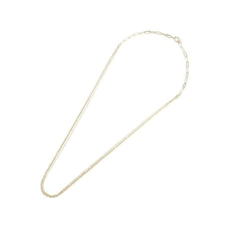 異素材感のあるチェーンミックスが印象的で、シンプルながらも洗練された雰囲気を演出します。程よいボリューム感がありながら重たく見えず、首元に自然なアクセントを加えてくれます。2WAYで使えるため、長さや見え方を変えてスタイリングの幅を広げられるのも嬉しいポイントです。Tシャツやシャツなどのカジュアルスタイルにはもちろん、ワンピースやジャケットスタイルにも相性良く馴染みます。さっと取り入れるだけでコーディネートが引き締まり、毎日の装いをワンランクアップしてくれる万能アイテムです。
