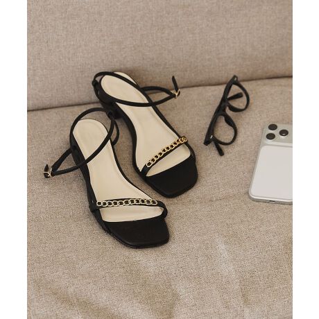 華奢ストラップとチェーンで魅せる上品ヌーディサンダル
