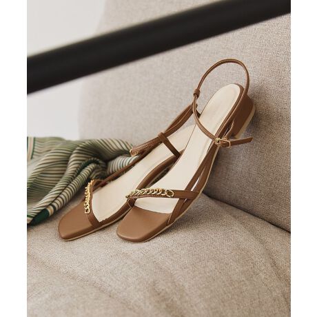 華奢ストラップとチェーンで魅せる上品ヌーディサンダル