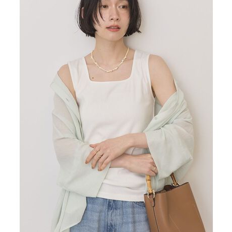 顔まわりをきれいに見せてくれるスクエアネックデザインが魅力のタンクトップです。首元をすっきりと見せながら、上品で女性らしい印象を演出してくれます。程よく体に沿うリブ素材は伸縮性があり、動きやすく快適な着心地です。シンプルなデザインなので、カーディガンやシャツ、ジャケットのインナーとしても使いやすく、幅広いコーディネートに活躍します。パンツやスカートと合わせて一枚で着ても、すっきりとした大人カジュアルスタイルが楽しめます。ベーシックなアイテムだからこそ着回し力が高く、デイリーコーデからお出かけまでさまざまなシーンで取り入れやすいのも魅力です。ワードローブに一枚あると重宝する、シンプルで使いやすい定番アイテムです。