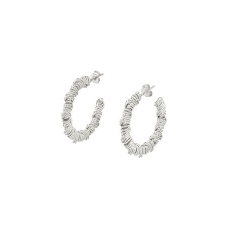 繊細なワイヤーを重ねたような立体的なデザインが印象的なピアスです。ほどよいボリューム感がありながらも軽やかな着け心地で、顔まわりに華やかさをプラスします。シンプルなフープ型に動きのあるディテールを加えることで、さりげなく個性を演出できるのも魅力です。カジュアルな装いには抜け感を、きれいめスタイルには程よいアクセントを添え、幅広いコーディネートに自然となじみます。デイリー使いはもちろん、特別なシーンにも取り入れやすい万能なアイテムです。