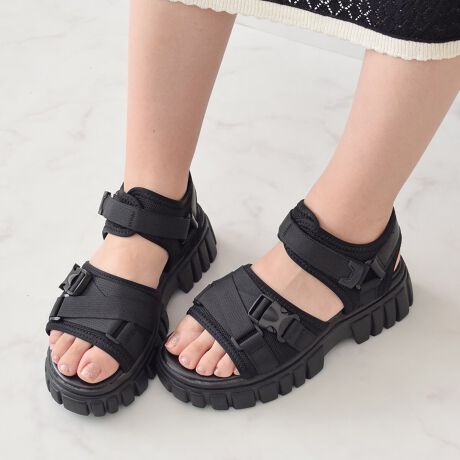 カジュアルなベルクロデザインのスポーツサンダル。軽い履き心地で、足当たりが柔らかいのも魅力。シーズンムードを高めてくれるアイテムです。厚底でスタイルアップが叶うので、普段のコーディネートをワンランクアップさせてくれるアイテムです。