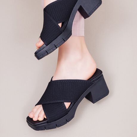 bussola◆6cmヒール◆クロスニットミュールサンダル