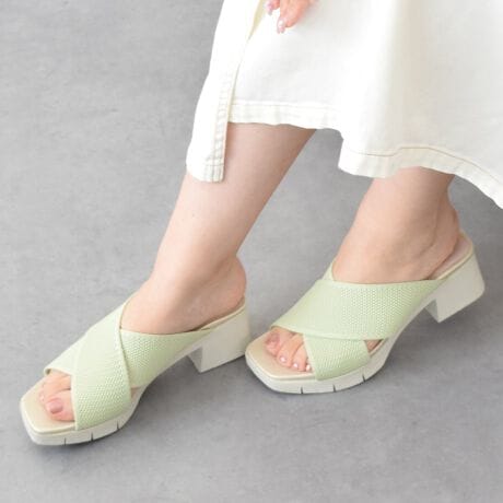 bussola◆6cmヒール◆クロスニットミュールサンダル