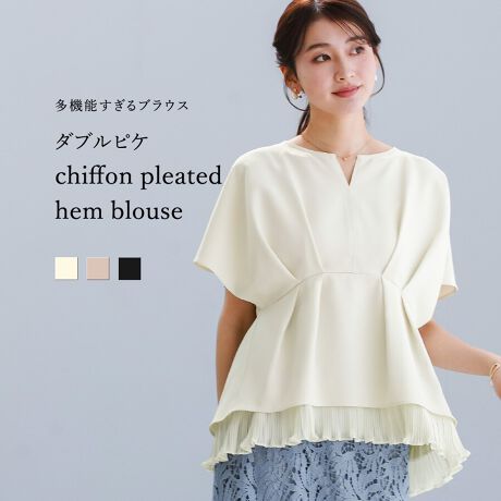 【 多機能すぎるブラウス 】ダブルピケ・裾シフォンプリーツブラウス