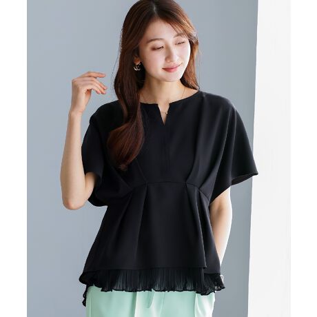 【 多機能すぎるブラウス 】ダブルピケ・裾シフォンプリーツブラウス