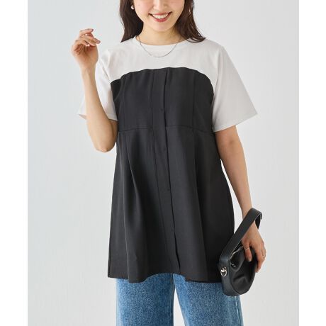胸元の切替とタック使いで立体感を演出し、1枚で着映えするアイテムに仕上げました。