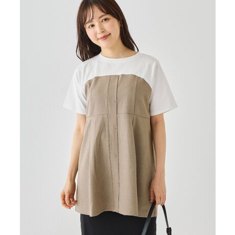 胸元の切替とタック使いで立体感を演出し、1枚で着映えするアイテムに仕上げました。