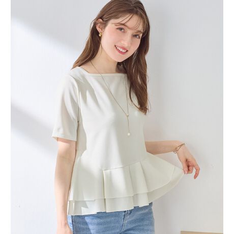 裾切替とタックでボリュームをだしたペプラムデザインが