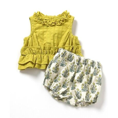 apres les cours(アプレレクール)の「【リンク】フリルトップスセット_アプレレクールマシェリ」は、やさしいニュアンスのナチュラルなデザイン。ベビーギフトや出産祝いの主役にも♪