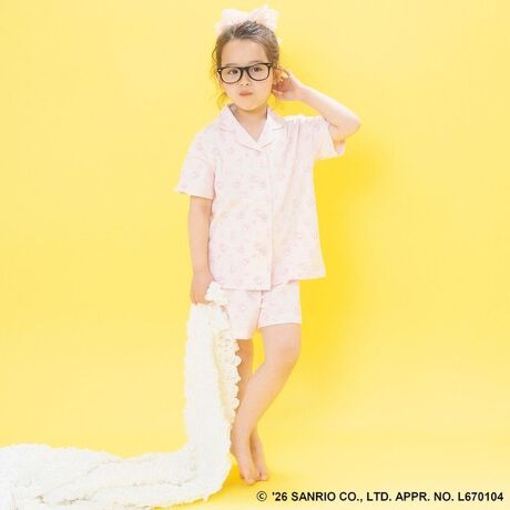 サンリオキャラクターがプリントされた開襟デザインの総柄パジャマ
